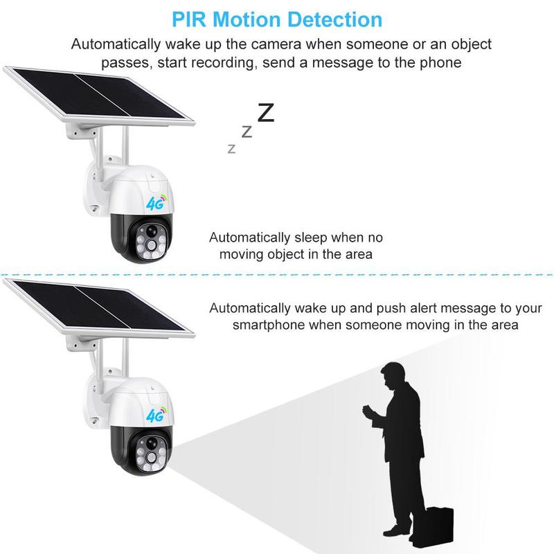 V380 4G Solar PTZ säkerhetskamera 3MP (H.265) - PIR-rörelsedetektering, smart mörkerseende, tvåvägskommunikation, IP66 utomhus, 350 pan/90 tilt, microSD upp till 128 GB