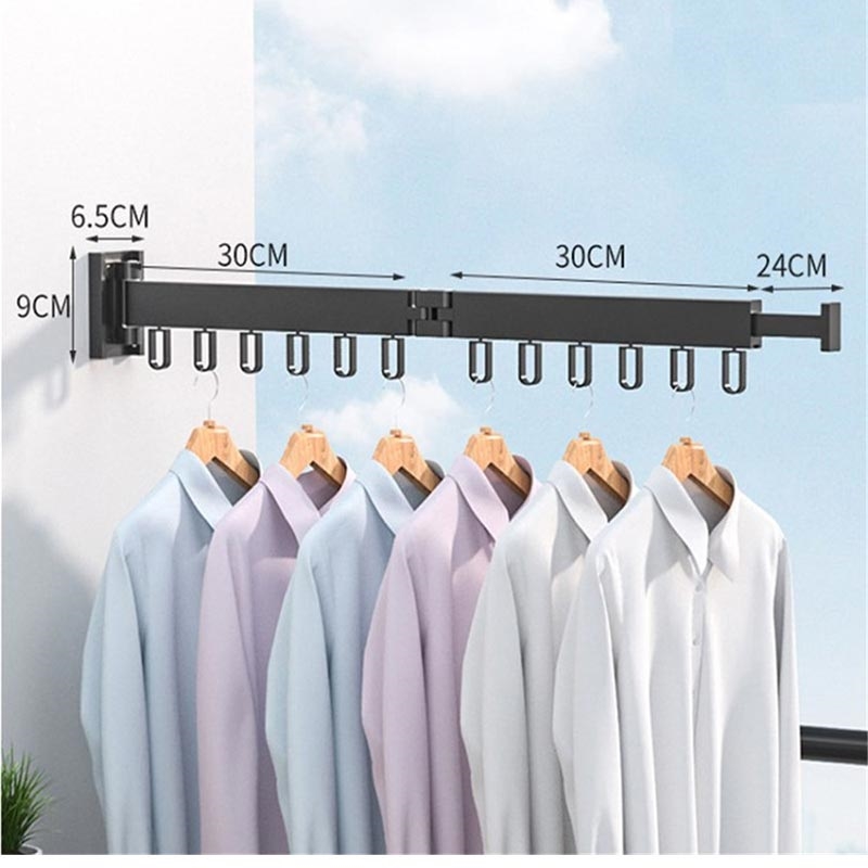 Justerbar, utdragbar, väggmonterad tvätthängare - platsbesparande klädkrok med 2 leder