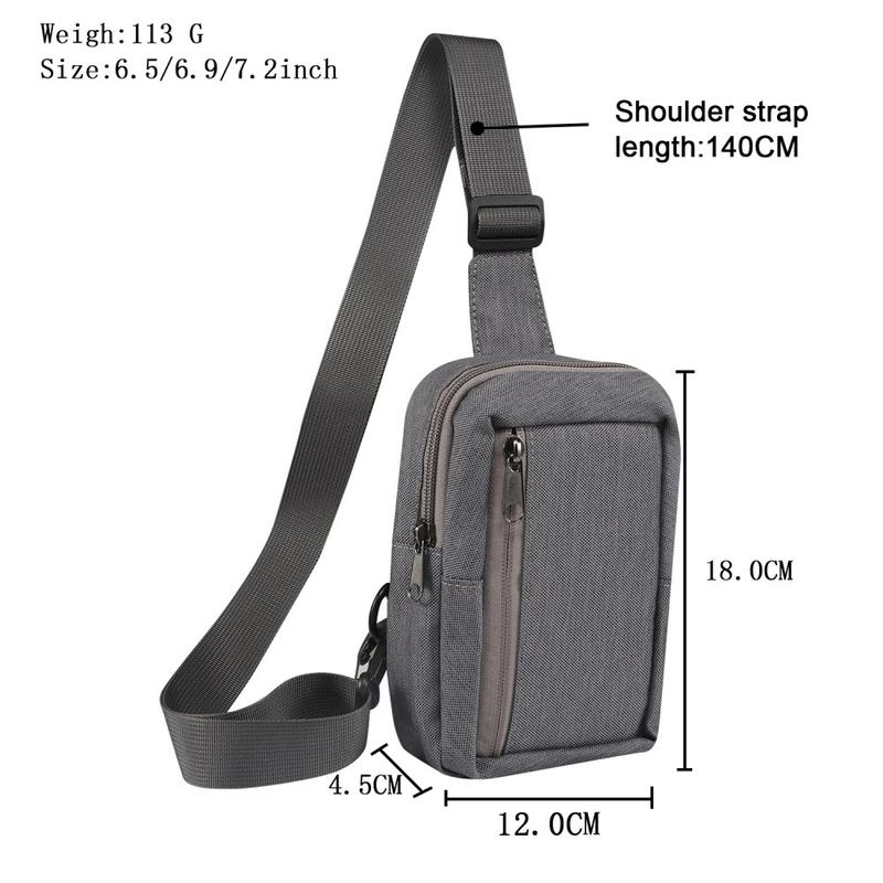 Bär enkelt med dig din telefon och andra viktiga saker i denna bröst- och axelremsväska i vattenresistent nylon. Väskan är designad för vardagsbruk eller resor och passar telefoner upp till 7,2 tum och erbjuder skydd och stil. Den justerbara remmen och den lätta designen garanterar komfort, medan det slitstarka nylonmaterialet skyddar dina tillhörigheter från väder och vind.