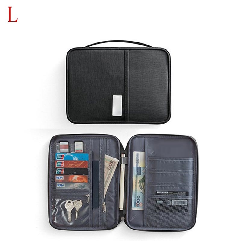 Håll alla dokument säkra och organiserade på affärsresan eller familjesemestern med den här stora reseplånboken. Plånboken är tillverkad av lättviktig 300D katjonisk polyester och avvisar regnstänk och oavsiktligt spill samtidigt som den väger nästan ingenting i en axelremsväska. En hel dragkedja öppnar sig och avslöjar dedikerade fack för fyra pass, boardingkort, bankkort och kontanter, så att incheckningen och säkerhetsköerna går snabbare och blir stressfria.