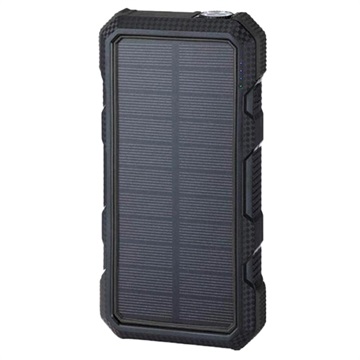 Vattenresistent Solcells Powerbank/Trådlös Laddare - 20000mAh - Svart