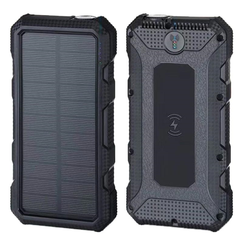 Vattenresistent Solcells Powerbank/Trådlös Laddare - 20000mAh - SvartVattenresistent Solcells Powerbank/Trådlös Laddare - 20000mAh - Svart