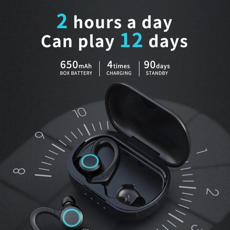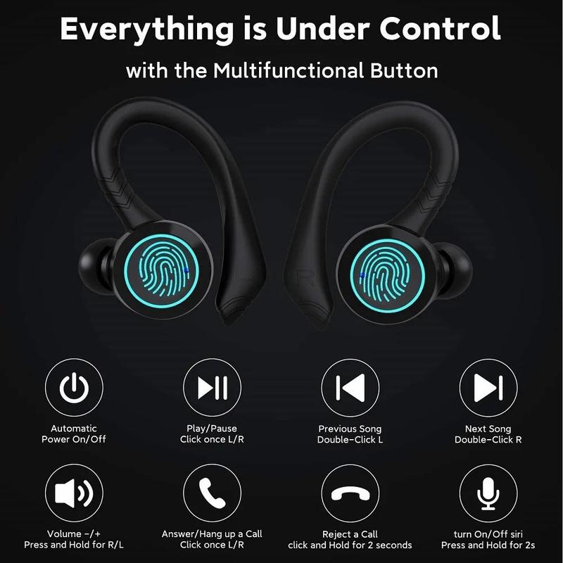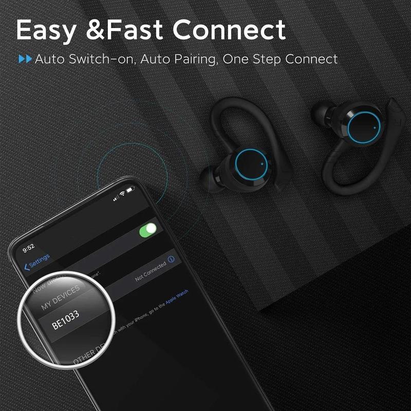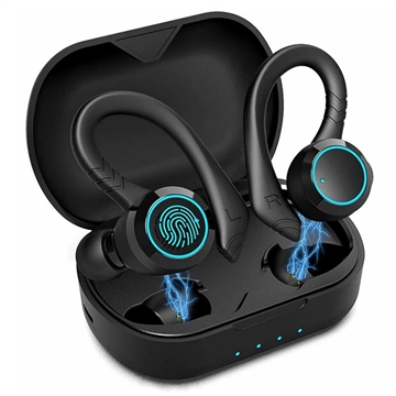BE1033 Bluetooth-hörlurar för sport - IPX7-vattentäta trådlösa hörlurar med laddningsfodral och pekstyrning