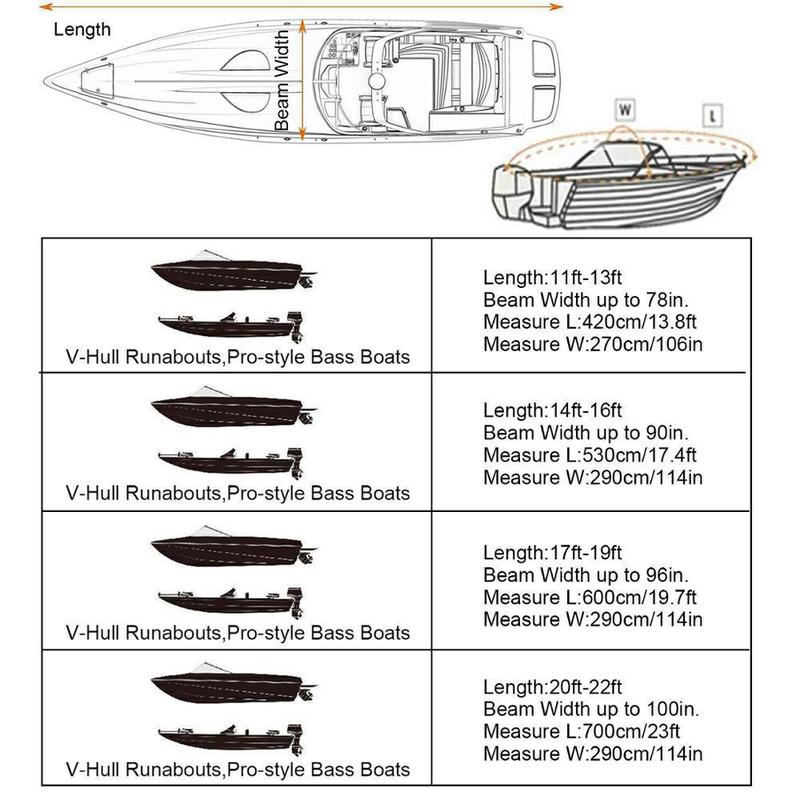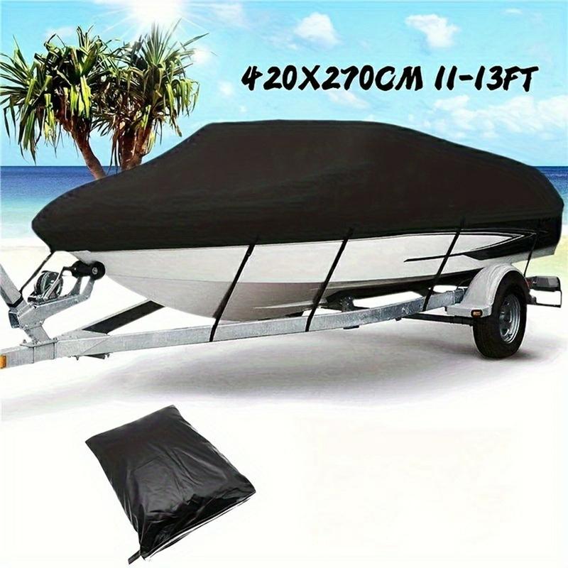 Vattentätt 210D-överdrag för 11-13 fots båtar (420 x 270 cm) - PU-belagt sol- och väderskydd med justerbara remmar, spännen och förvaringsväska