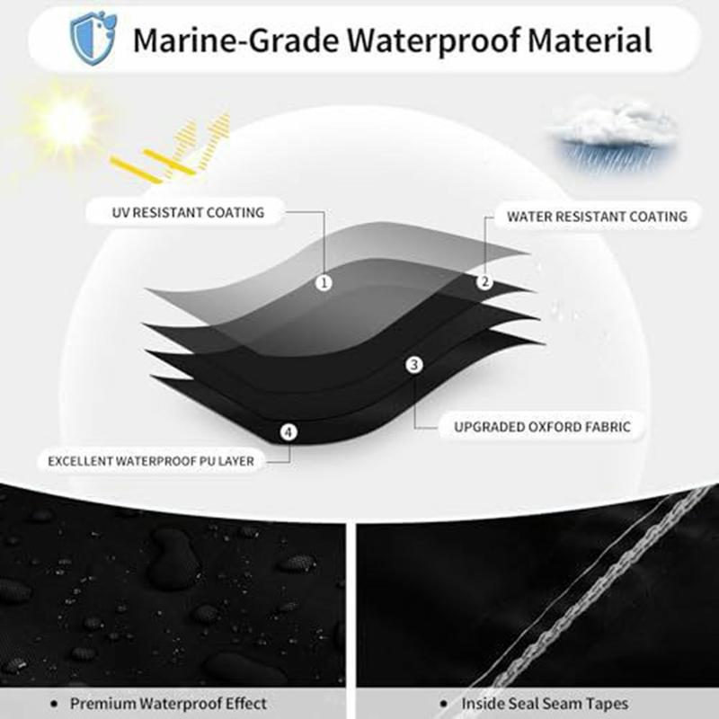 Om du vill ha ett enkelt och effektivt sätt att förlänga båtens snygga utseende och minska underhållet är det här överdraget en smart investering. Det PU-belagda 210D-tyget, de säkra remmarna och den åtsittande elastiska fållen gör det perfekt för ägare som behöver ett tillförlitligt skydd för förvaring och transport - utan komplicerad montering eller skrymmande material.