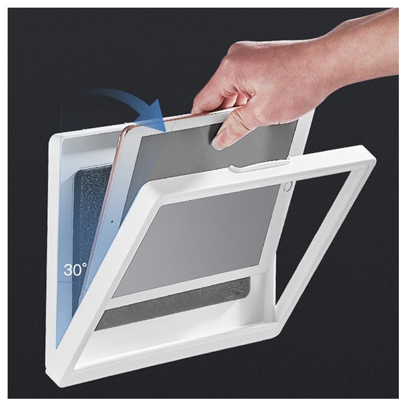 Nu kan du till och med ta med dig surfplattan in i duschen, tack vare detta vattentäta fodral och vägghållare. Detta fodral har en imfri egenskap, en främre panel som är kompatibel med touchfunktion och en 30-graders öppning som gör att du kan sätta in och ta ut surfplattan utan att behöva oroa dig för att tappa den i golvet. Den har en enkel stick-on-montering så du kan placera detta vattentäta fodral på väggen utan att behöva borra hål. Du kan dessutom välja om du vill sätta upp det i vertikalt eller horisontellt läge och njuta av filmer eller videor på recept när du är i duschen eller lagar mat.