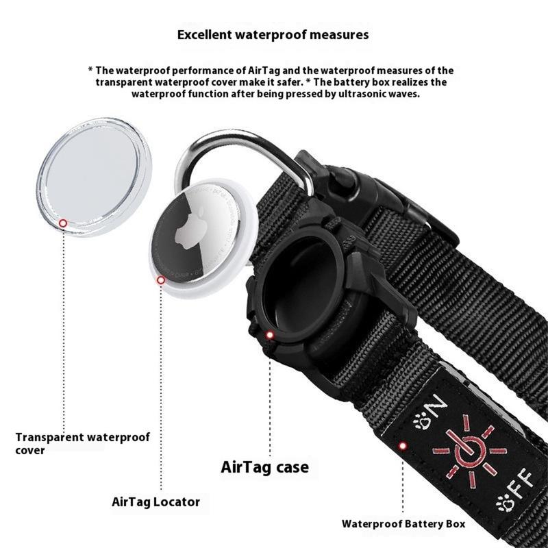 LED-hundhalsband med fodral för Apple AirTag 1/2 - vattentätt halsband med uppladdningsbar lampa