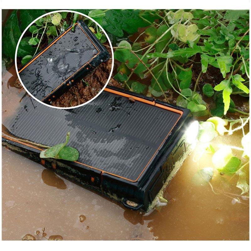 Denna universella solladdare kommer bli din kompanjon på dina resor, tack vare den enorma batterikapaciteten på 10000mAh, två USB-laddningsutgångar och LED-ficklampa. Du kan ladda din smartphone och surfplatta samtidigt med dina kablar. Denna solar powerbank löser enkelt låga batteri-situationer och håller dig USB-stödjande enheter vid liv under utomhusäventyr.
