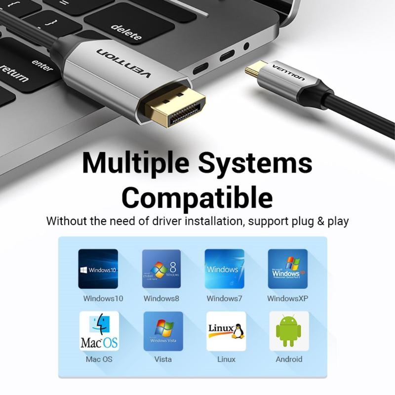 Upplev smidig, högupplöst visning på en större skärm med VENTION CGZBH CGZ Series Type-C till DP-kabel. Den här kabeln är tillverkad av premiummaterial och har en banbrytande design och gör det enkelt att ansluta USB-C-enheter (med stöd för 3.1-protokoll) till DisplayPort-utrustade bildskärmar eller TV-apparater, vilket ger kristallklara bilder och synkroniserat ljud med minimal fördröjning.