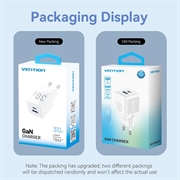 Vention FEQ 30W GaN snabbladdare för vägg - dubbla USB-C och USB-A
