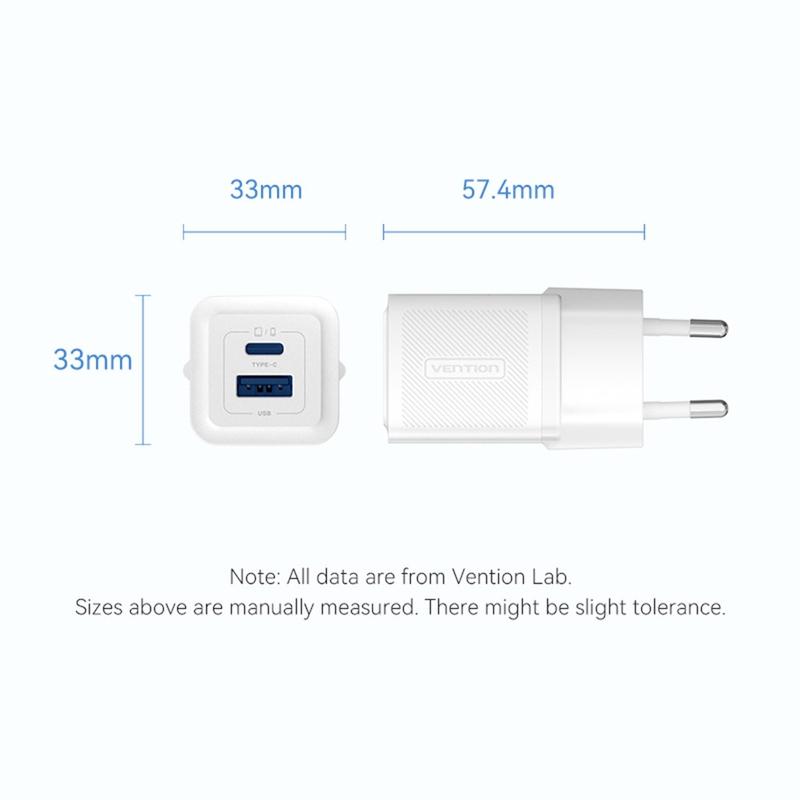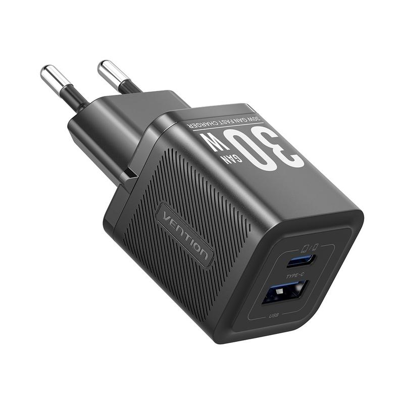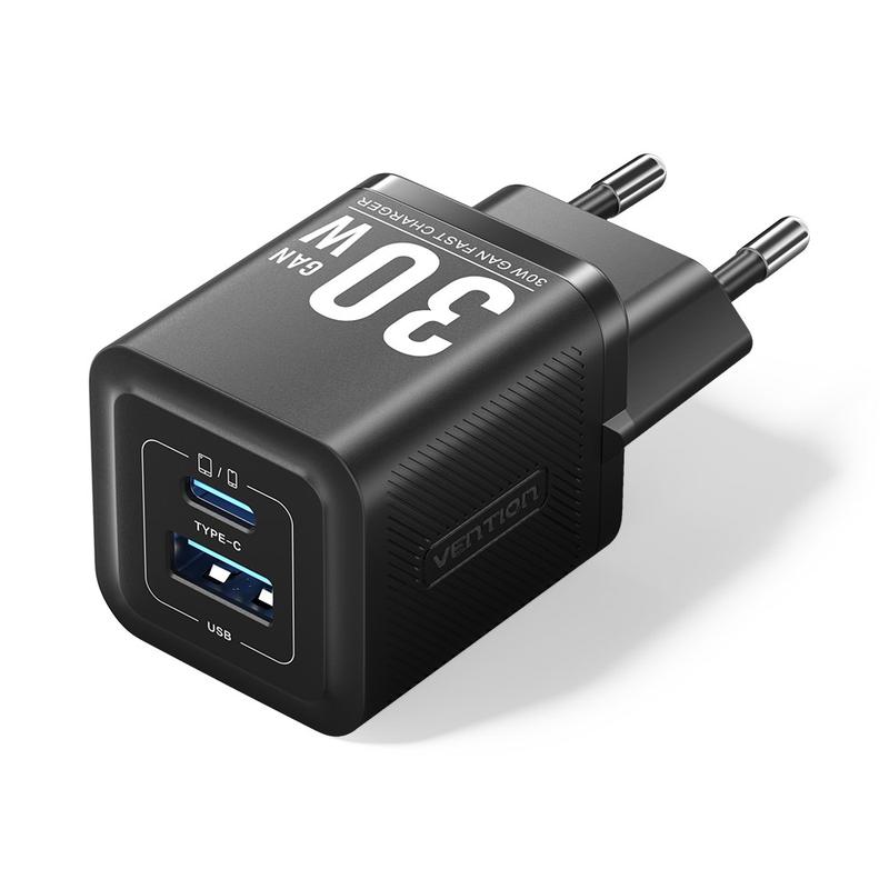 • Vention FEQ 30W GaN snabbladdare för vägg - dubbla USB-C och USB-A