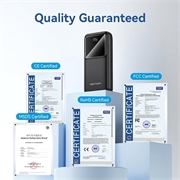 Den inbyggda digitala displayen visar tydligt återstående batterinivå, vilket gör det enklare att hålla koll på tillgänglig ström. Detta hjälper dig att veta när det är dags att ladda powerbanken, istället för att förlita dig på mindre exakta indikatorlampor. En digital display ger extra bekvämlighet för användare som föredrar en tydligare översikt över batteristatus under daglig användning.