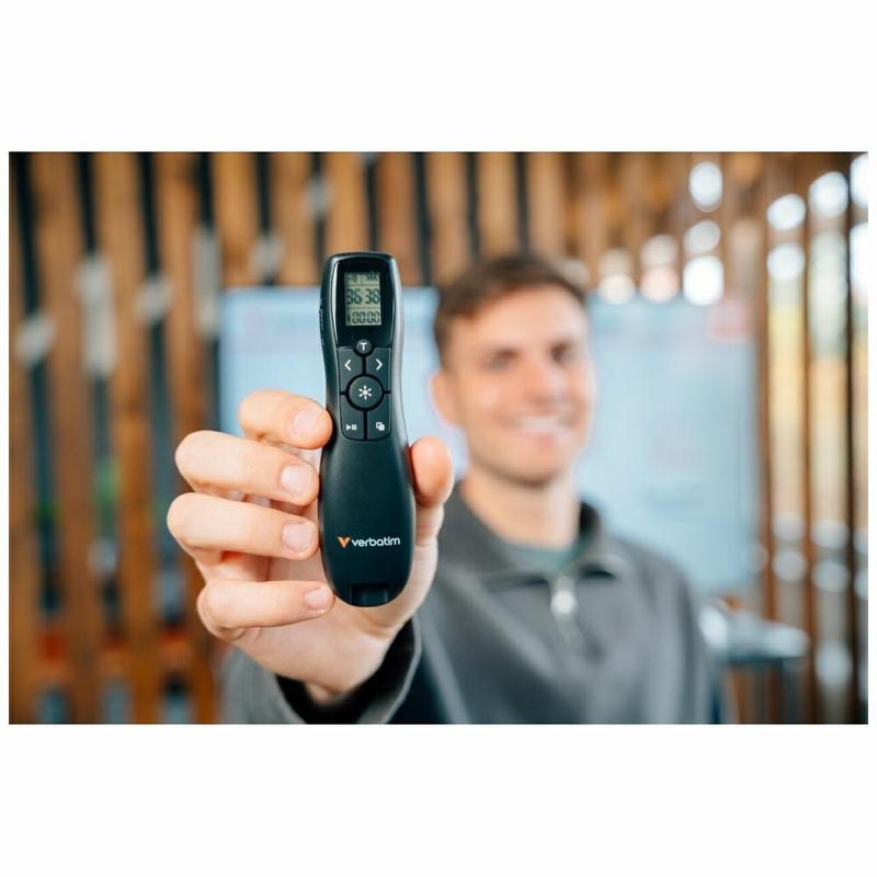 Verbatim Keynote trådlös presentatör med LCD-skärm - timer, röd laser 100 m, 30 m trådlös räckvidd - USB-A-mottagare + USB-C-adapter