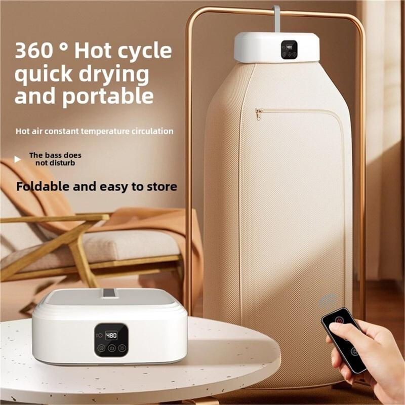 Vikbar klädtork med 360° varmluftscirkulation - 60°C torkning + UV-sterilisering med blått ljus, PTC-keramikvärme, 10 kg last, timer 1-8 h, fjärrkontroll