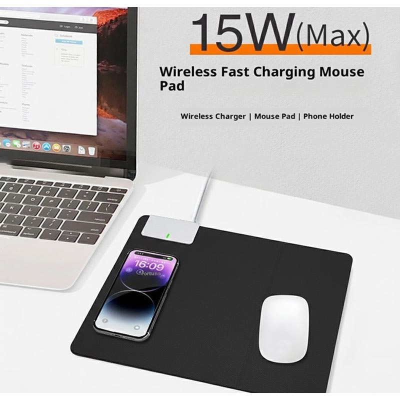 Den här musmattan ger komfort, effektivitet och smart funktionalitet i ett enda elegant tillbehör. Den eliminerar behovet av separata laddare och ställ, vilket hjälper dig att hålla arbetsytan ren samtidigt som din telefon förblir strömförsörjd och synlig hela dagen.