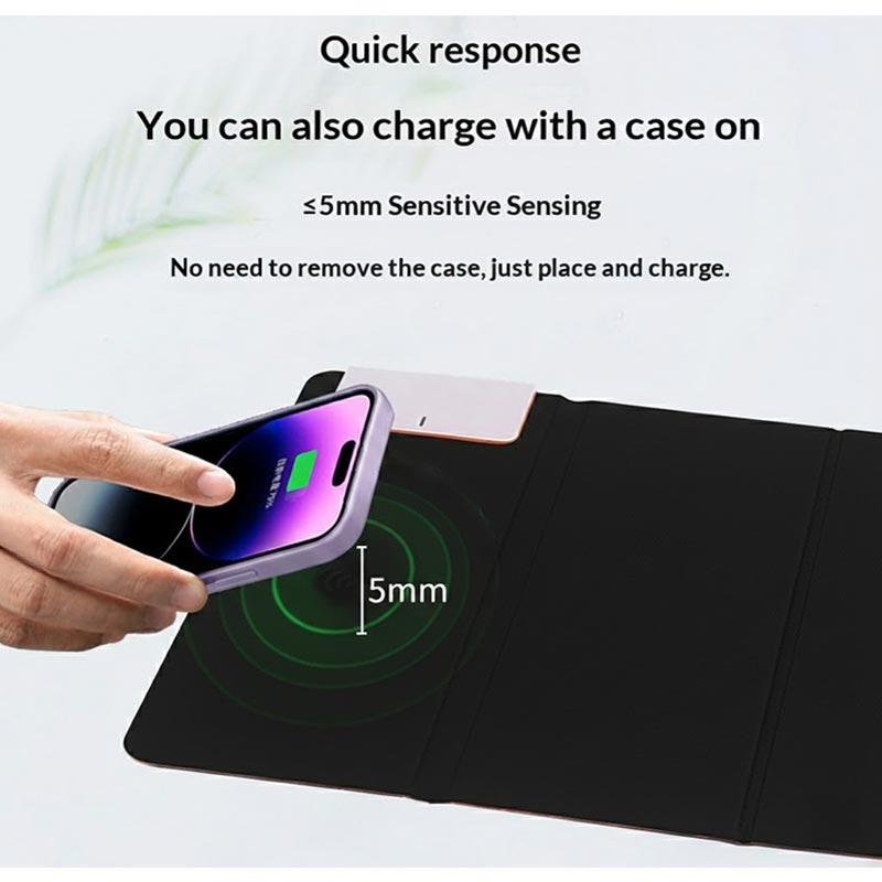 Den inbyggda trådlösa laddningsmodulen stöder upp till 15W snabbladdning, vilket ger snabb och effektiv strömförsörjning till kompatibla smartphones. Med ultratunn avkänningsteknik (≤5 mm) laddas den tillförlitligt även genom de flesta mobilskal.