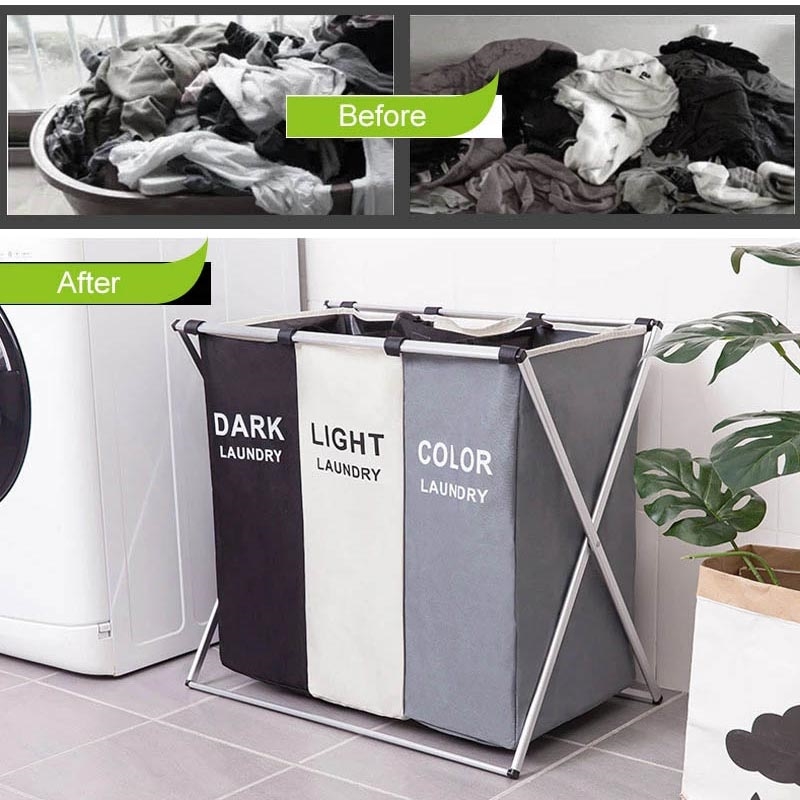 Den 3-delade designen gör att du kan sortera kläder efter typ eller färg - perfekt för att organisera mörk, ljus och känslig tvätt på ett och samma ställe.