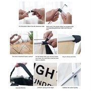 - Montering: Sätt in armbågarna i rören → anslut X-ramen → fäst Oxford-tygöverdraget med remmar