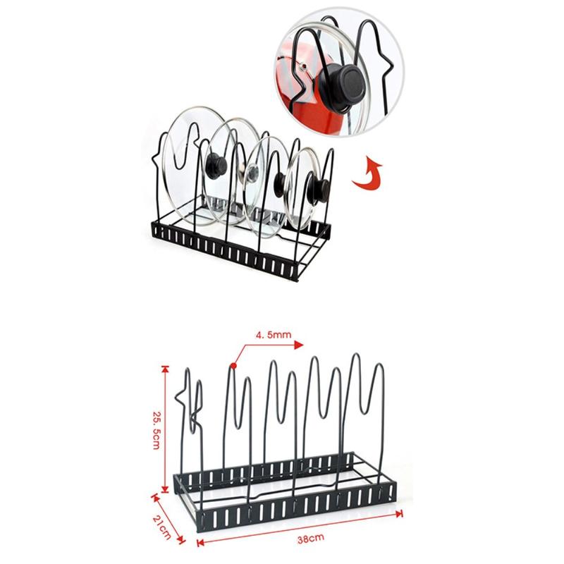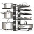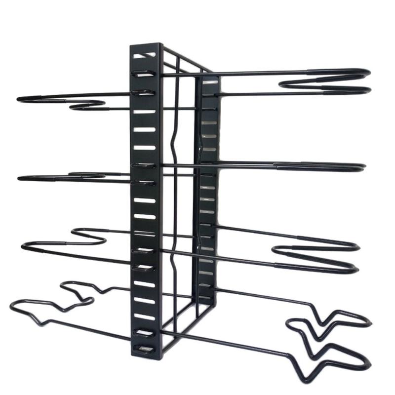 Återta ditt köksutrymme med detta 8-lagers organiseringsställ för kök, som är utformat för att rymma kastruller, stekpannor, lock, bakplåtar och till och med tallrikar. Det är tillverkat av robust järnmaterial och kan placeras vertikalt eller horisontellt, vilket ger dig maximal flexibilitet i alla matlagningsutrymmen. Tack vare den smarta bågformade brickdesignen kommer grytlocken inte i kontakt med marken, vilket ger snabbare torkning och renare förvaring.