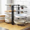 - Multifunktionellt ställ för stekpannor, kastruller, lock och tallrikar