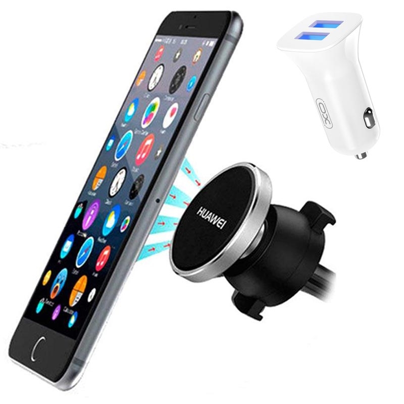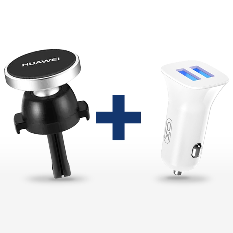 Bilnödvändigheter Duo - Huawei magnetisk telefonhållare & XO Dual-USB billaddare