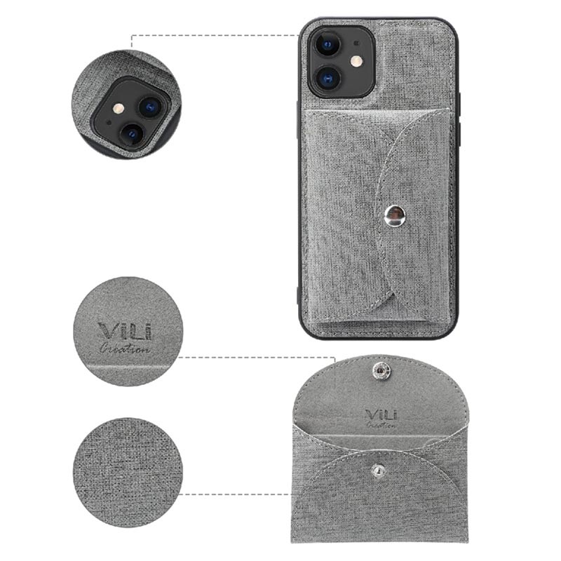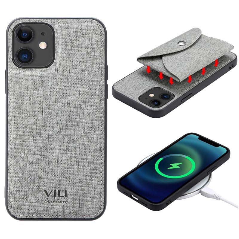 Vili T iPhone 12/12 Pro Skal med Magnetisk Plånbok - Grå