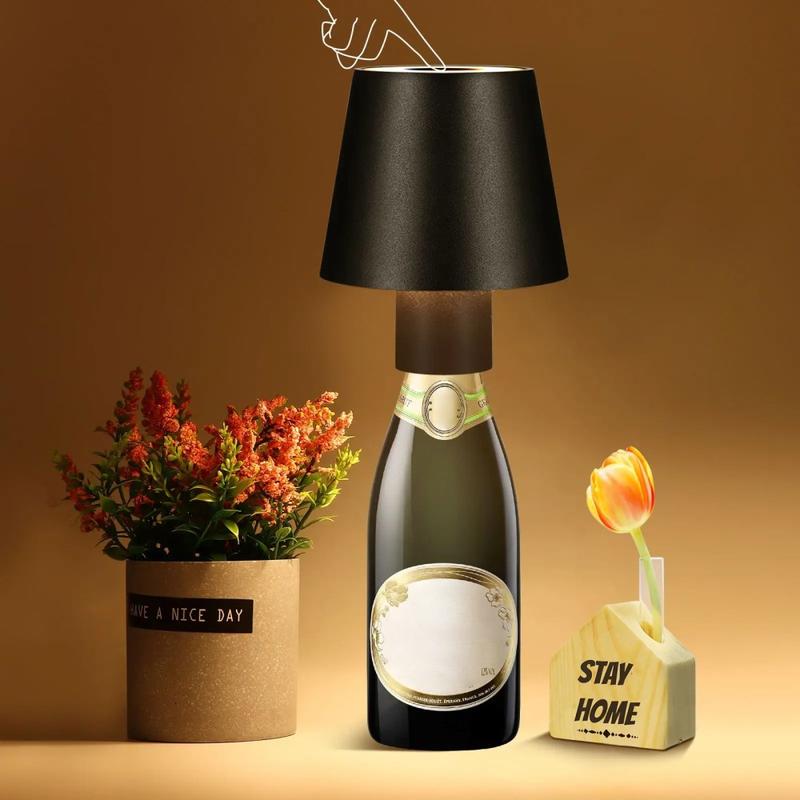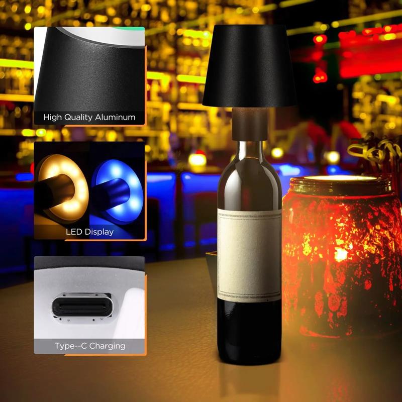 Vinflasklampa med 3 färgskiftande LED-lampor med touchkontroll Bärbar skrivbordslampa för bar och fest