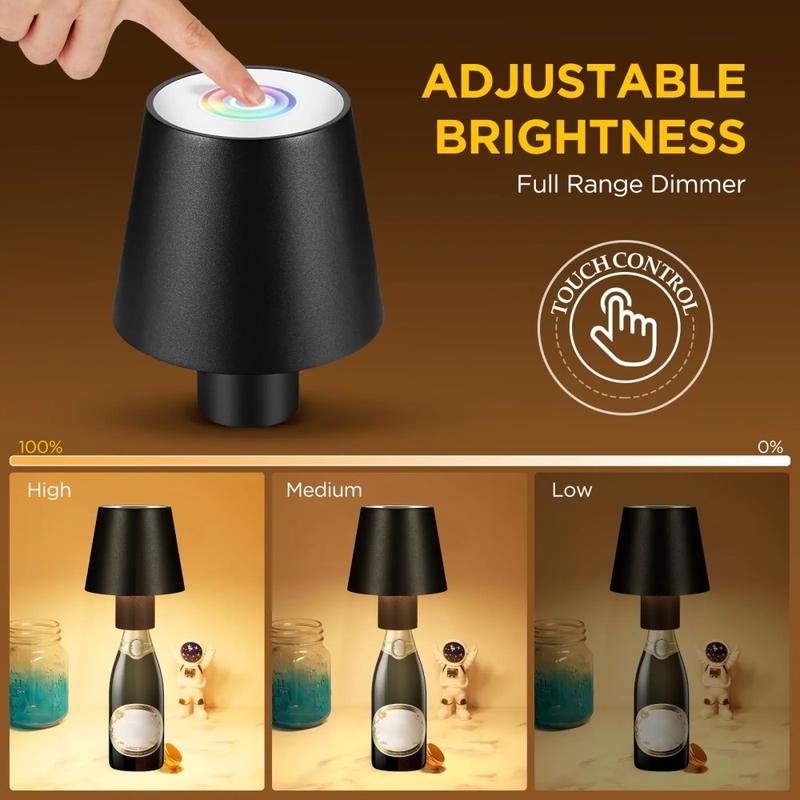 • Vinflasklampa med 3 färgskiftande LED-lampor med touchkontroll Bärbar skrivbordslampa för bar och fest - Svart