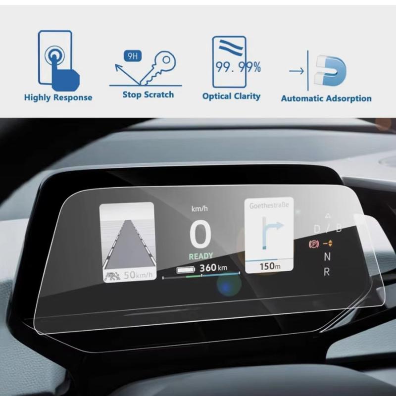 Instrumentpanelens skärm är en av de mest använda ytorna i bilen, så det är klokt att skydda den i ett tidigt skede. Denna film av härdat glas lägger till ett starkt skyddande lager utan att förändra skärmens ursprungliga känsla. Den hjälper till att hålla skärmen renare, klarare och bättre skyddad från vardagliga märken, vilket gör den till en smart uppgradering för alla ägare av Volkswagen ID.4X/ID.6X.