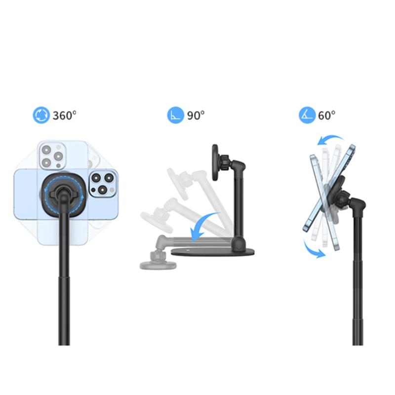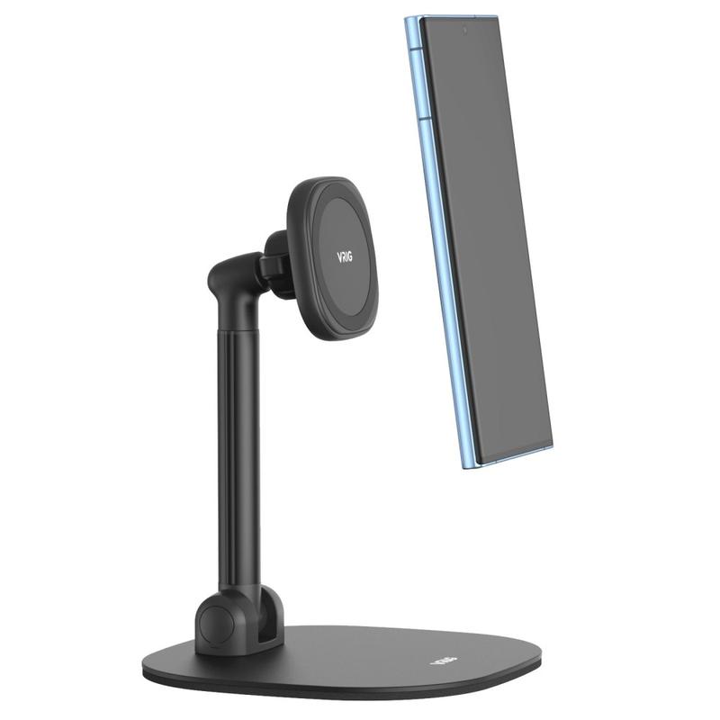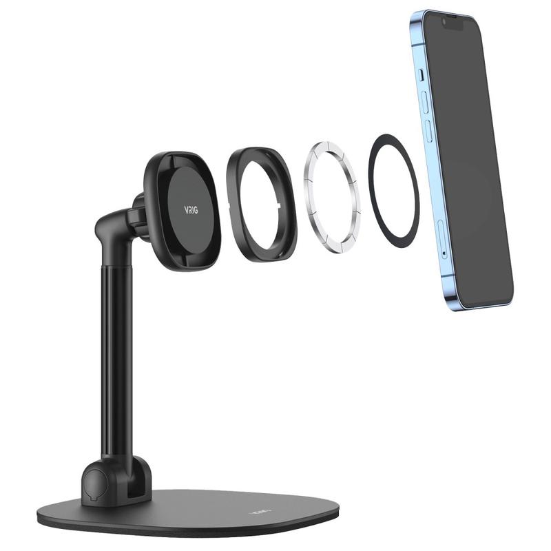 Vrig MG-04 Roterande magnetiskt skrivbordsstativ för iPhone 12-17 och MagSafe-fodral - justerbar 22-36 cm telefonhållare i kolfiberstål