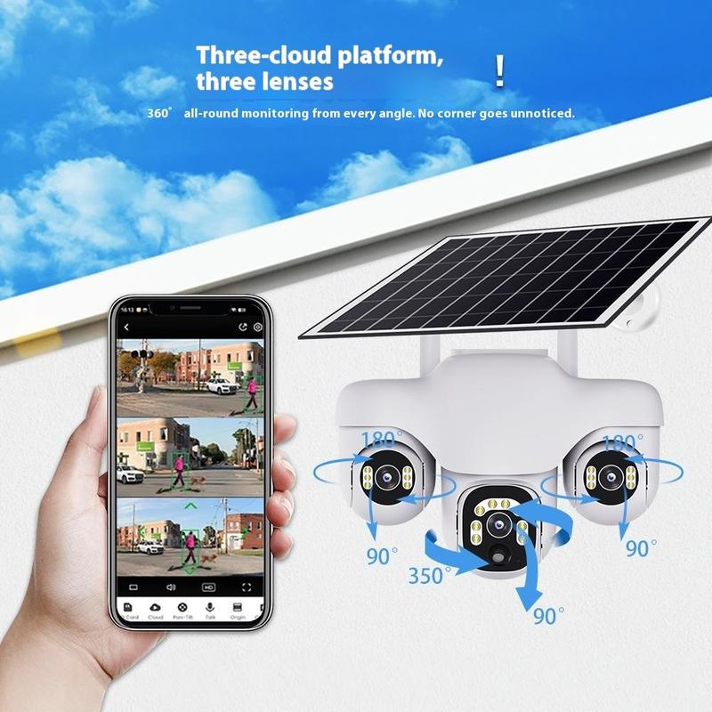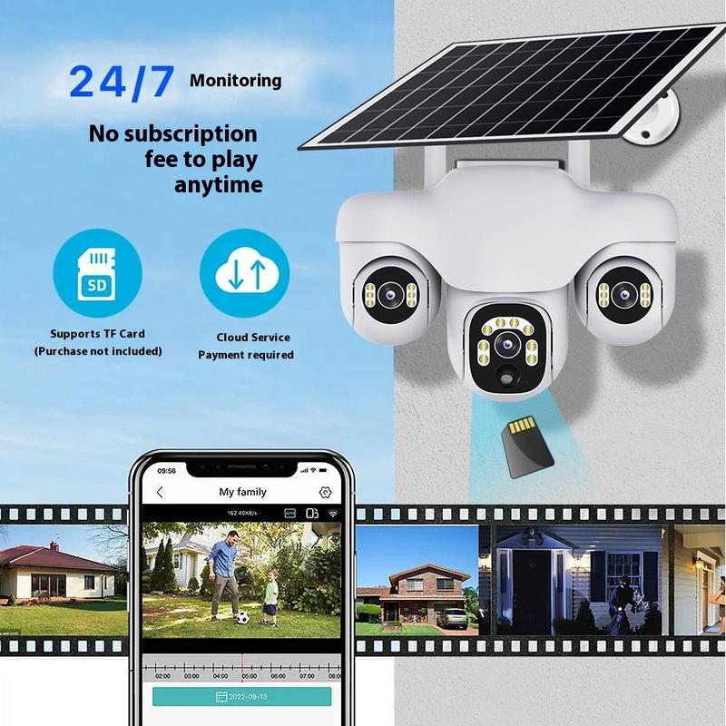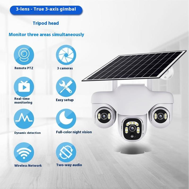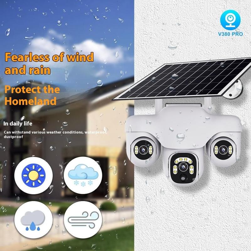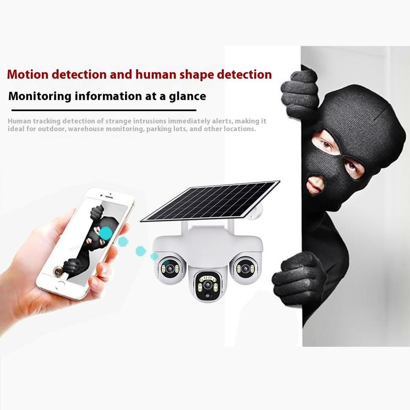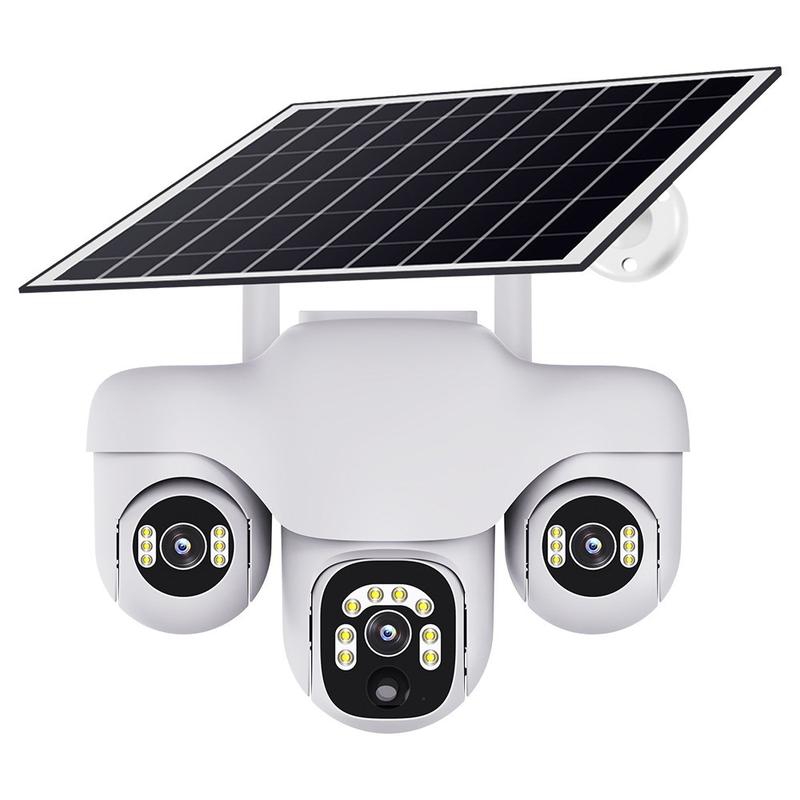 VTS31 V380 Solcellsdriven PTZ-övervakningskamera med tre objektiv - Utomhus-WiFi-övervakningskamera med rörelsedetektering