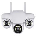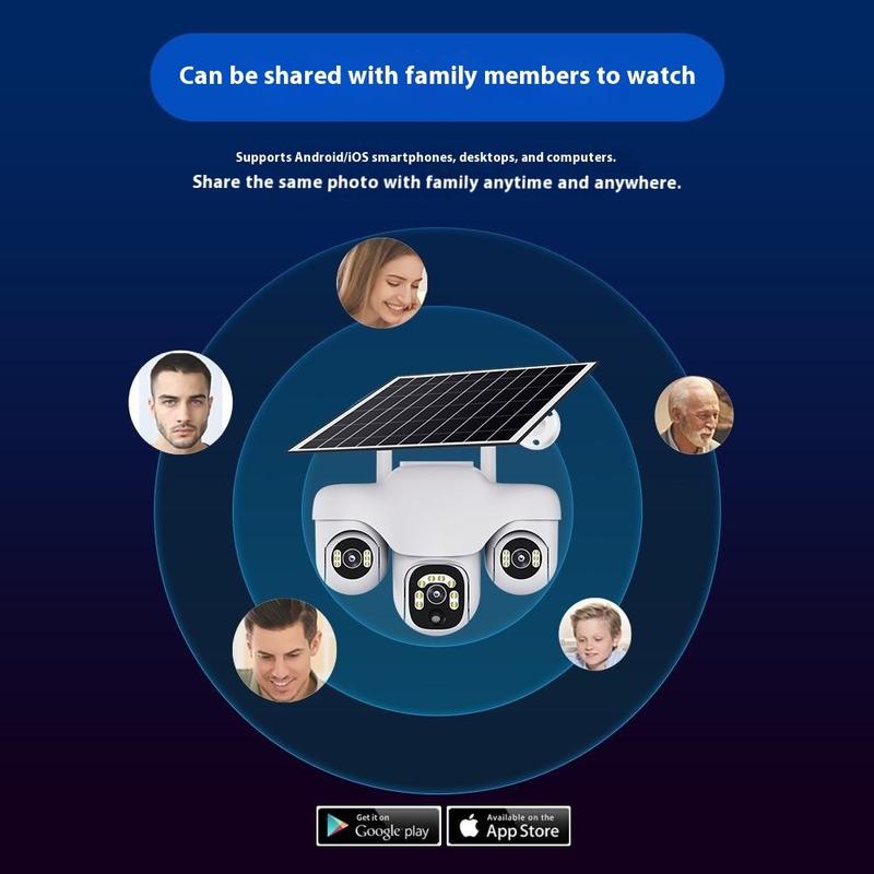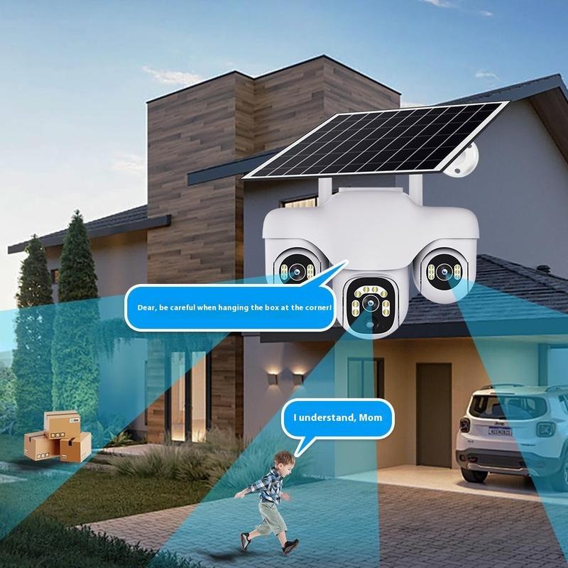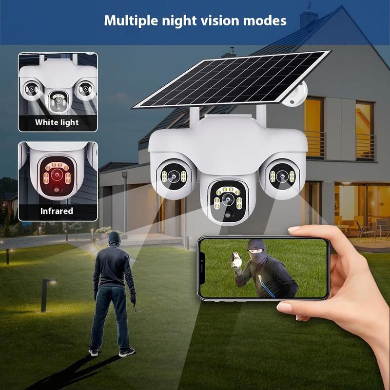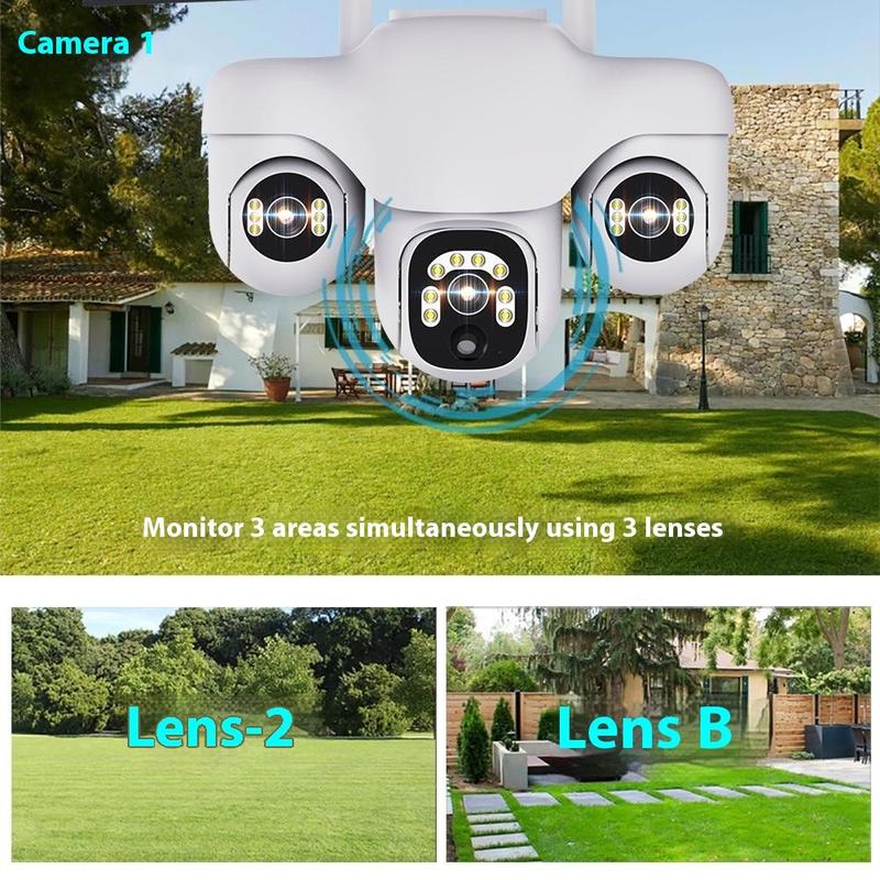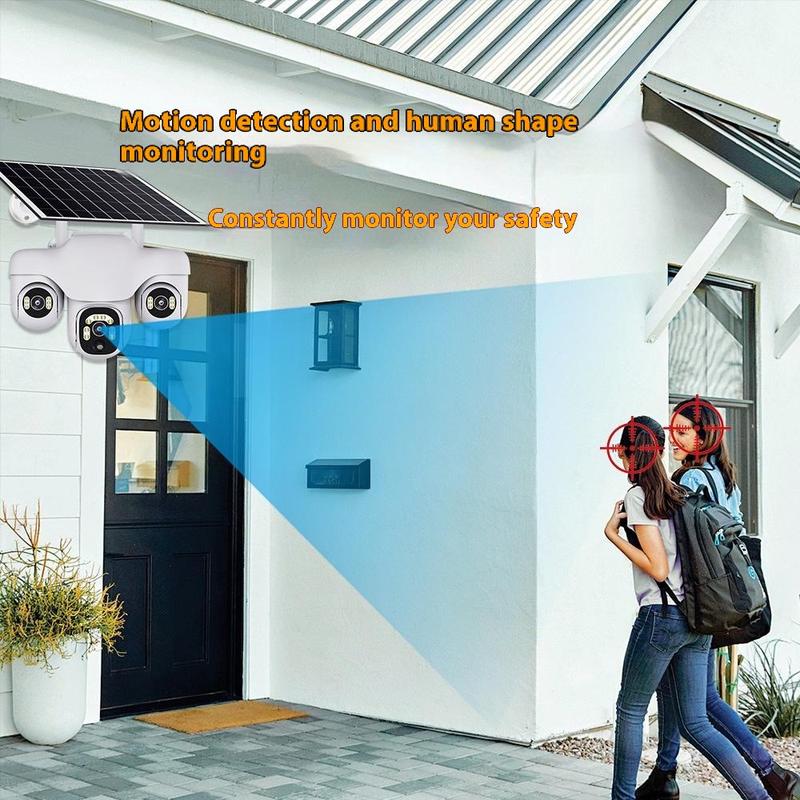 VTS31 V380 Solcellsdriven PTZ-övervakningskamera med tre objektiv - Utomhus-WiFi-övervakningskamera med rörelsedetektering
