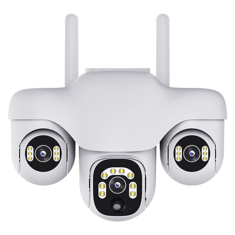 Denna modell kombinerar panoramatäckning, smarta detekteringsfunktioner och nattövervakning i en utomhusklar design. Tack vare sin layout med tre linser och roterande PTZ-struktur kan den övervaka ett mycket större område än många standardkameror med en enda lins, vilket hjälper till att minska döda vinklar runt din fastighet.