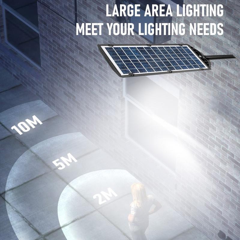 W7101B Solar vägglampa med rörelsesensor - 3-modig vattentät LED-lampa för utomhusbruk med extra bred panel
