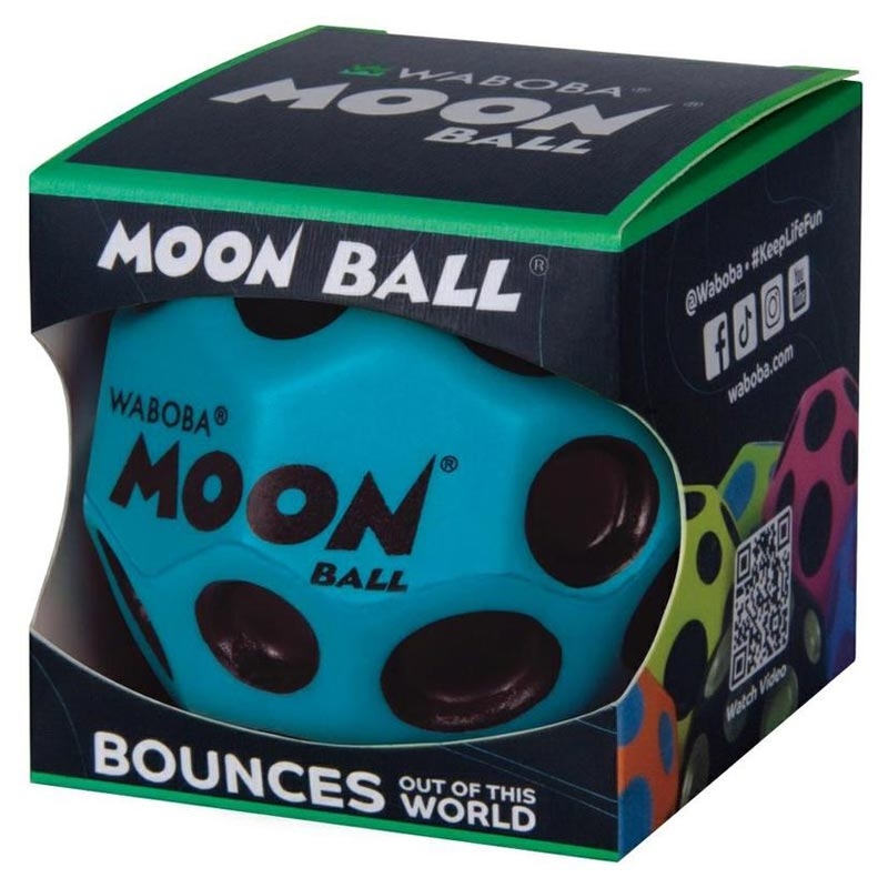 Waboba Moon Ball är tillverkad av slitstarkt termoplastiskt gummi med hög elasticitet och är utformad för lek på hårda underlag som asfalt, betong, trottoar och idrottsplaner. Den oregelbundna, kraterformade strukturen bidrar till bättre studseegenskaper och ger bollen dess välkända knäppande ljud vid nedslag, vilket tillför ännu mer energi och tillfredsställelse till varje kast och studs. Den är kompakt och lätt, vilket gör den enkel att ha med sig i fickan eller ryggsäcken för spontan utomhuslek var som helst.