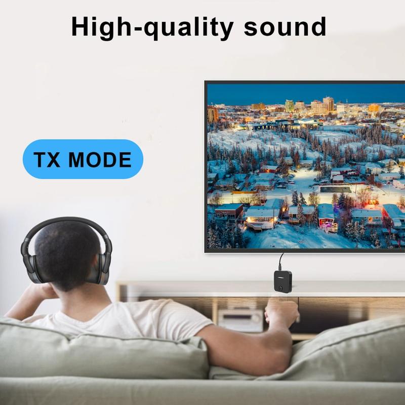 I TX-läget skickar adaptern ljud från icke-Bluetooth-enheter som TV-apparater, MP3-spelare, DVD-spelare eller datorer till Bluetooth-hörlurar eller högtalare. Perfekt för att titta på TV sent på kvällen utan att störa andra.