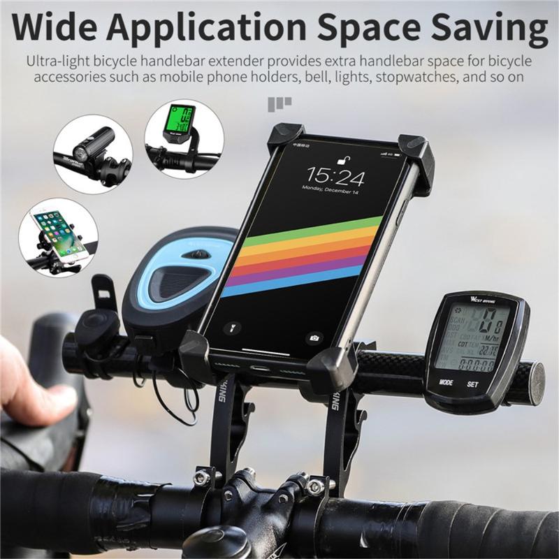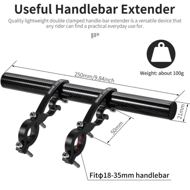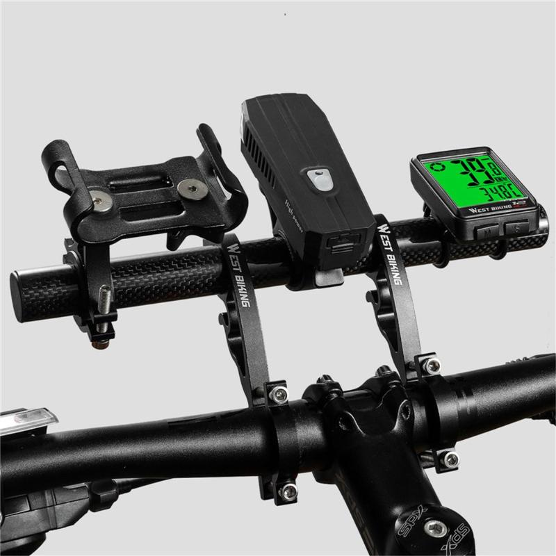 WEST BIKING Förlängare av cykelstyre i kolfiber med dubbla klämfästen för cykellampa och GPS-dator