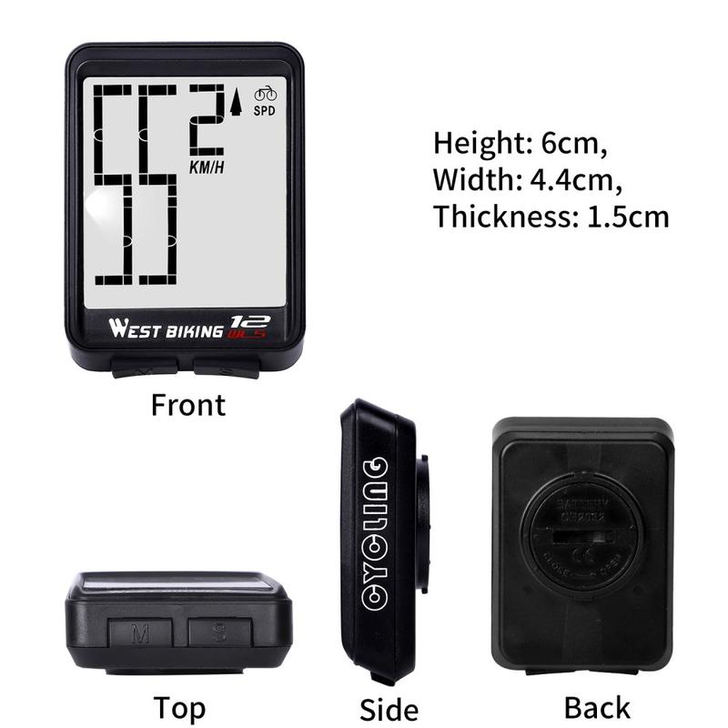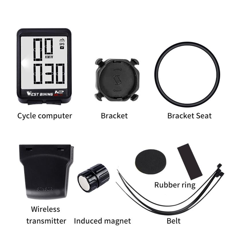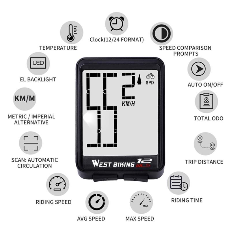 WEST BIKING MTB Road Bike Computer Screen Backlight Waterproof Wireless Multi-function Cycling Speedometer - Svart