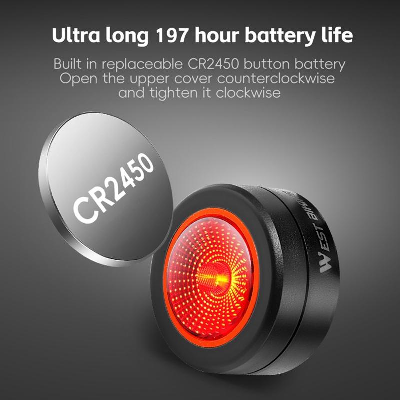 Öka din synlighet och cykla med självförtroende med hjälp av WEST BIKINGs smarta bakljus med magnetisk bromssensor. Detta kompakta bakljus är utformat för montering på sadelstången och har intelligent rörelsedetektering och automatisk bromssensor för att varna trafiken bakom dig. Det drivs av ett utbytbart CR2450-batteri och har en drifttid på upp till 197 timmar, vilket gör det till en pålitlig säkerhetsuppgradering för daglig pendling och nattcykling.
