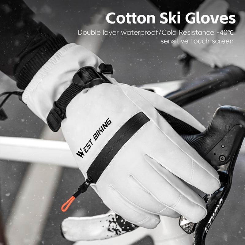 West Biking YP0211271 Vattentäta skidhandskar - vinter vindtät pekskärm cykelhandskar med dragkedja ficka