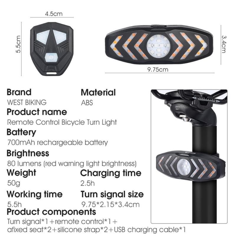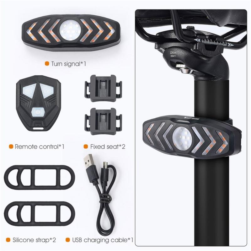 WEST BIKING YP0701313 Uppladdningsbar LED-baklykta för cykel Fjärrkontroll för cykelcykel Blinkers Varningsbaklykta med påminnelseton för signalhorn