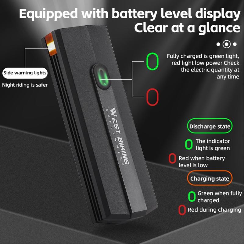 WEST BIKING YP0701407 Cykelstrålkastare i plast 400LM nattcykling Cykelficklampa Framlampa - Svart
