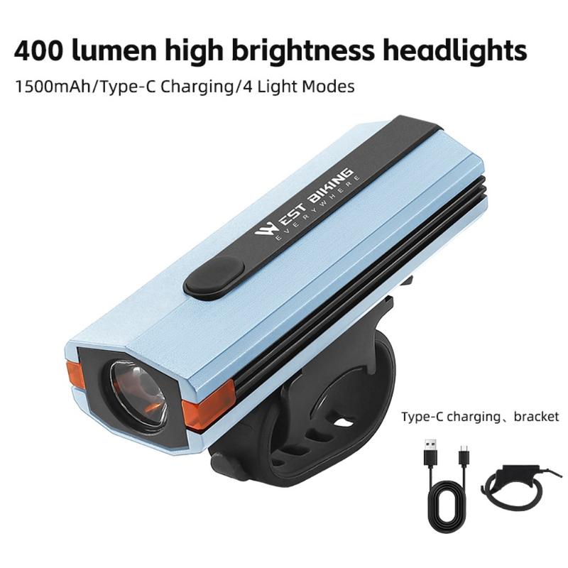WEST BIKING YP0701407 Cykelstrålkastare i plast 400LM nattcykling Cykelficklampa Framljus - Blå