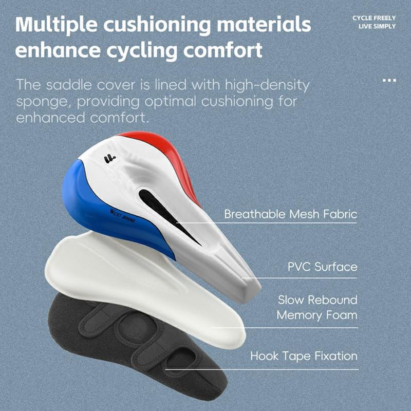 Gör dina cykelturer bekvämare med WEST BIKING YP0801256 cykelsadelöverdrag. Tillverkat av mjukt minnesskum med återfjädring och en vattentät PU-yta, vilket hjälper till att minska trycket på sadeln och förbättrar komforten på längre turer. Den ergonomiska 3D-formen med ett ihåligt, ventilerande nät underlättar luftflödet för att minska värmeuppbyggnaden, medan det stora halkskyddet i silikon håller överdraget på plats under cyklingen. Den slitstarka Oxford-tygstrukturen ger extra motståndskraft mot slitage, vilket gör det till en praktisk uppgradering för landsvägscyklar och många andra cykeltyper.