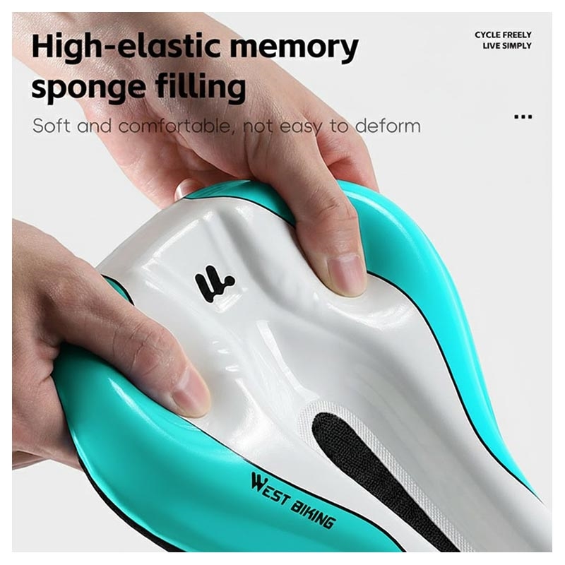 Gör dina cykelturer bekvämare med WEST BIKING YP0801256 cykelsadelöverdrag. Tillverkat av mjukt minnesskum med återfjädring och en vattentät PU-yta, vilket hjälper till att minska trycket på sadeln och förbättrar komforten på längre turer. Den ergonomiska 3D-formen med ett ihåligt, ventilerande nät underlättar luftflödet för att minska värmeuppbyggnaden, medan det stora halkskyddet i silikon håller överdraget på plats under cyklingen. Den slitstarka Oxford-tygstrukturen ger extra motståndskraft mot slitage, vilket gör det till en praktisk uppgradering för landsvägscyklar och många andra cykeltyper.