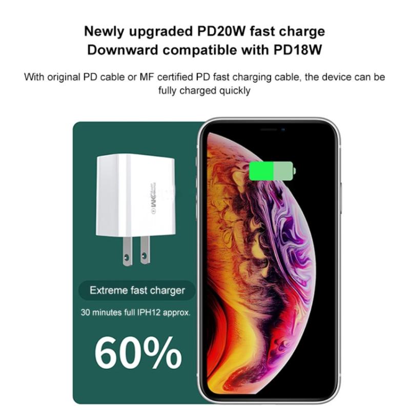 - PD Fast Charging Protocol - Laddar kompatibla iPhones (t.ex. iPhone 12) till 60 % på bara 30 minuter, vilket sparar värdefull tid.