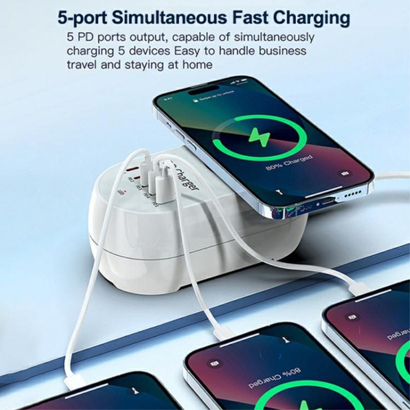 Stödjer samtidig utmatning av 5 PD-portar, vilket enkelt löser problemet med laddning av flera enheter