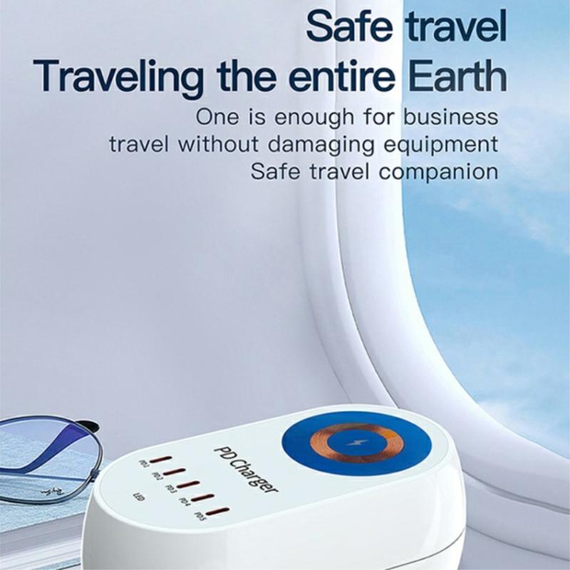 WLX-810C Fem PD-portar 140W GaN stationär laddare med stöd för 15W trådlös laddning