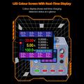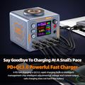 HD-färgskärmen ger realtidsövervakning av spänning och ström med 0,001 V / 0,001 A precision, vilket garanterar säker, exakt och kontrollerad laddning. Det inbyggda smarta chipet identifierar automatiskt anslutna enheter och justerar strömtillförseln för optimal laddningsprestanda.