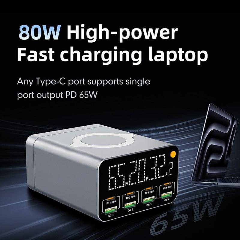 WLX-M3 80W 9-i-1 GaN-laddningsstation för skrivbord - USB-C/USB-snabbladdare med flera portar och trådlös laddning (EU-kontakt)